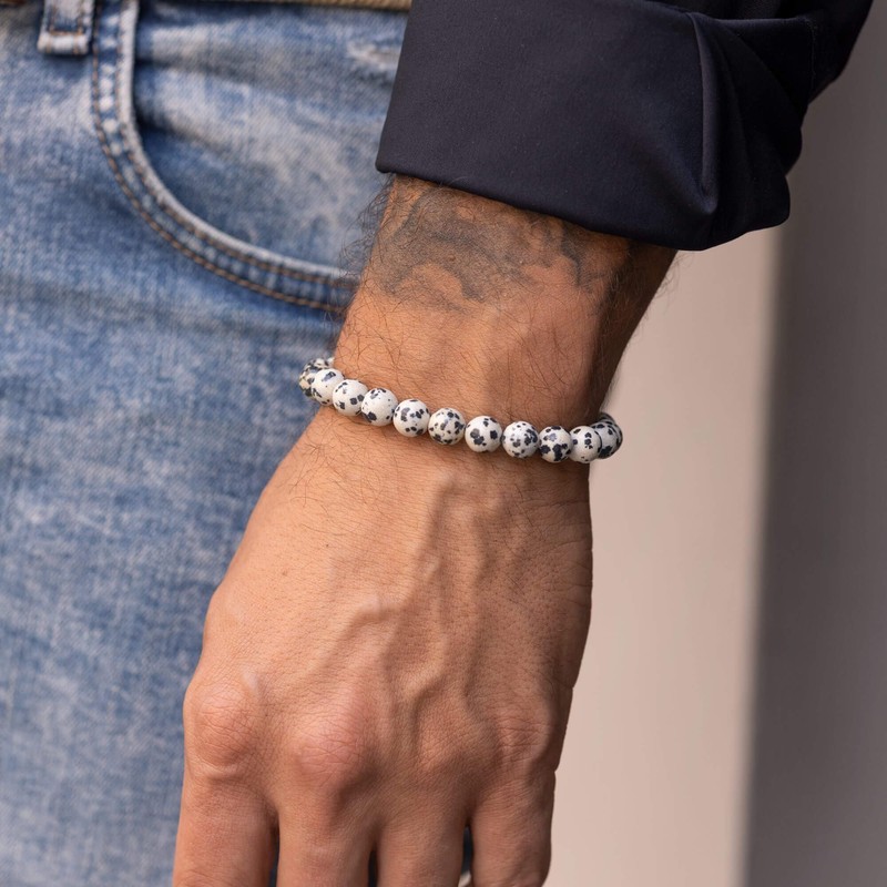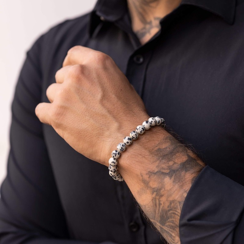 - Handcrafted with natural, semi-precious Dalmatian Jasper stone beads (8mm, AAA-grade) and the finest 925 Sterling Silver. Each bracelet is a unique piece, handmade in our boutique workshop.