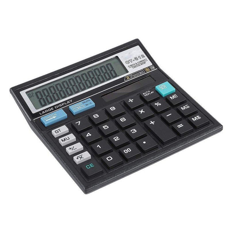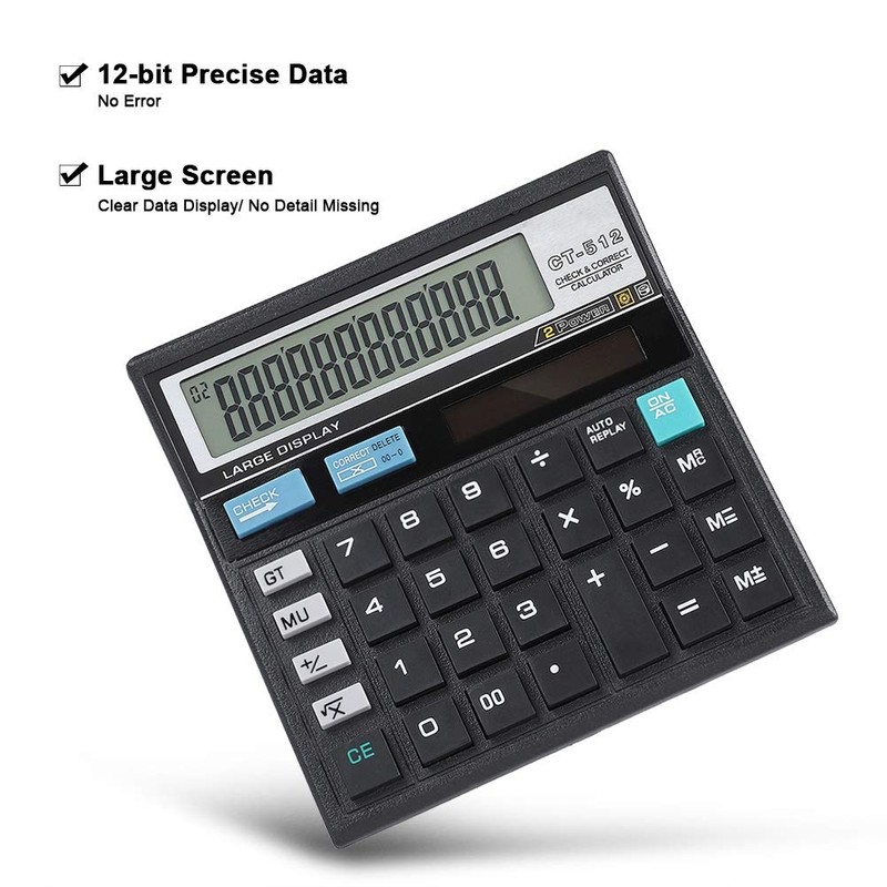 ASHATA Calculator, 12-digit standard function desk calculator, office calculator, large screen, practical solar calculator, calculator for office/finance, black
