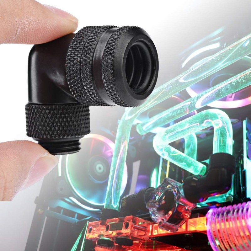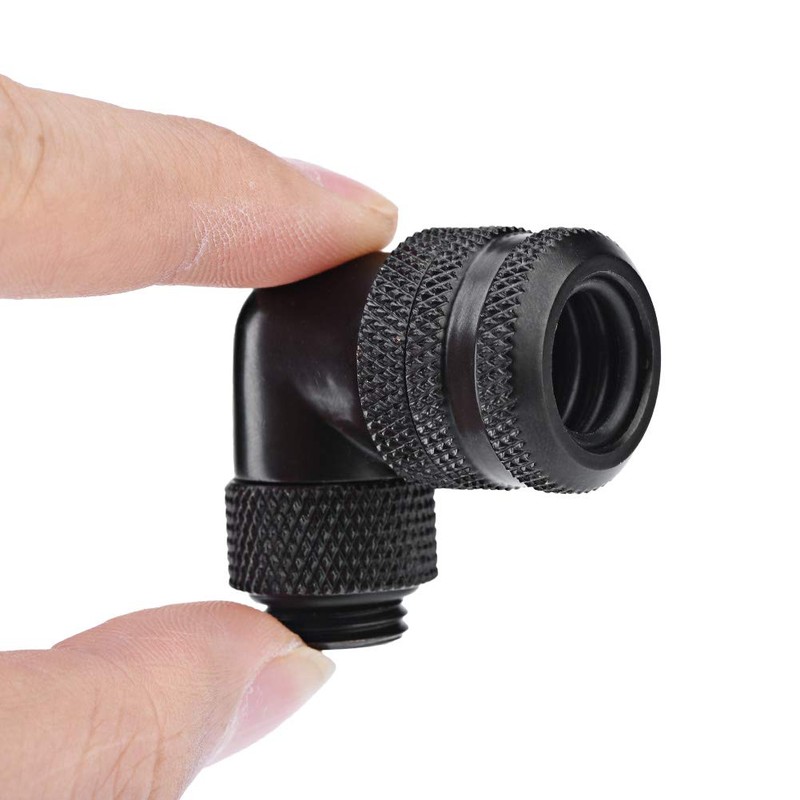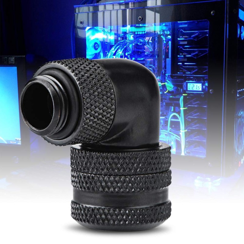 ASHATA G1/4 Thread Angle Adapter, PC Water Cooling Brass 90 Degree Angle Swivel Pipe Fitting Connector Adapter for 14 mm Outer Diameter PC Water Cooling (Black)