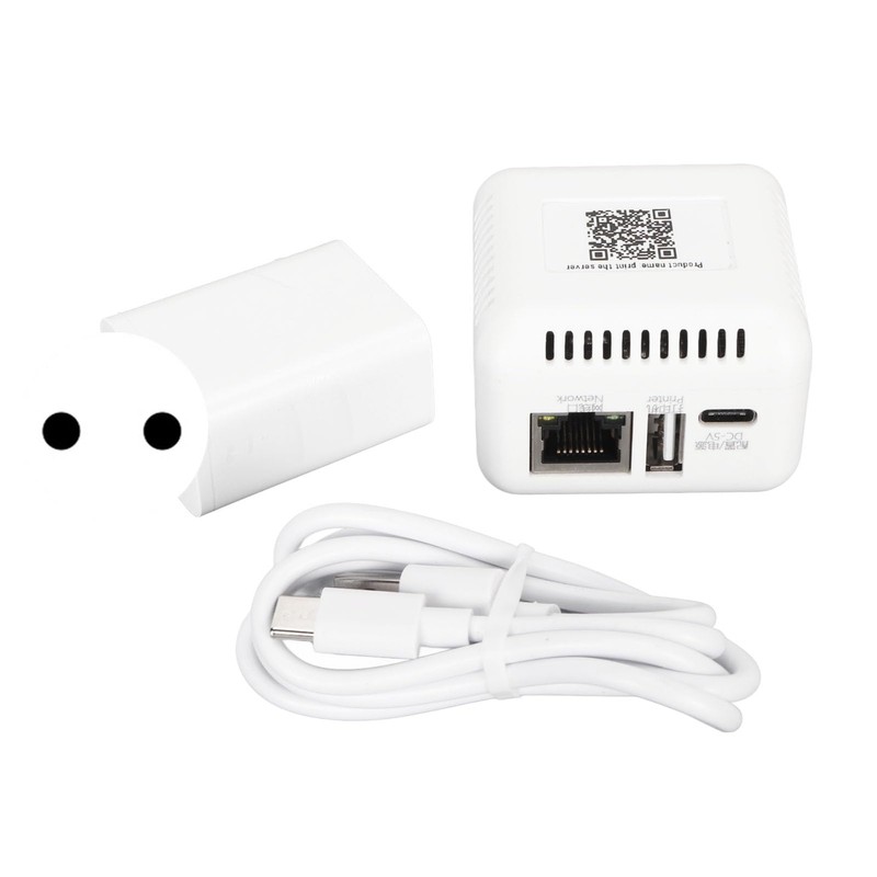 - Multiple interfaces: computer print server adapter with type C power supply port, printer USB port and network cable interface.