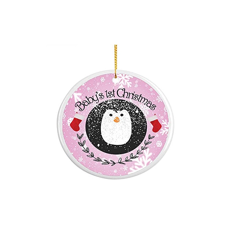 Ashby's Baby's First Christmas Pink Penguin Ceramic Keepsake Hanging Tree Dec...