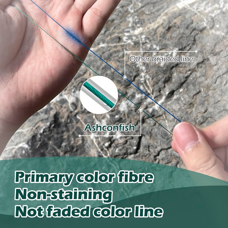 - COLOR RESISTANCE Ashconfish 8 Strand Braided Fishing Line is the first brand to offer a braided fishing line that will never fade. Whether exposed to sunlight or used in water for extended periods of time, the color will stay vibrant and enhance your fishing experience with a line that always looks new.