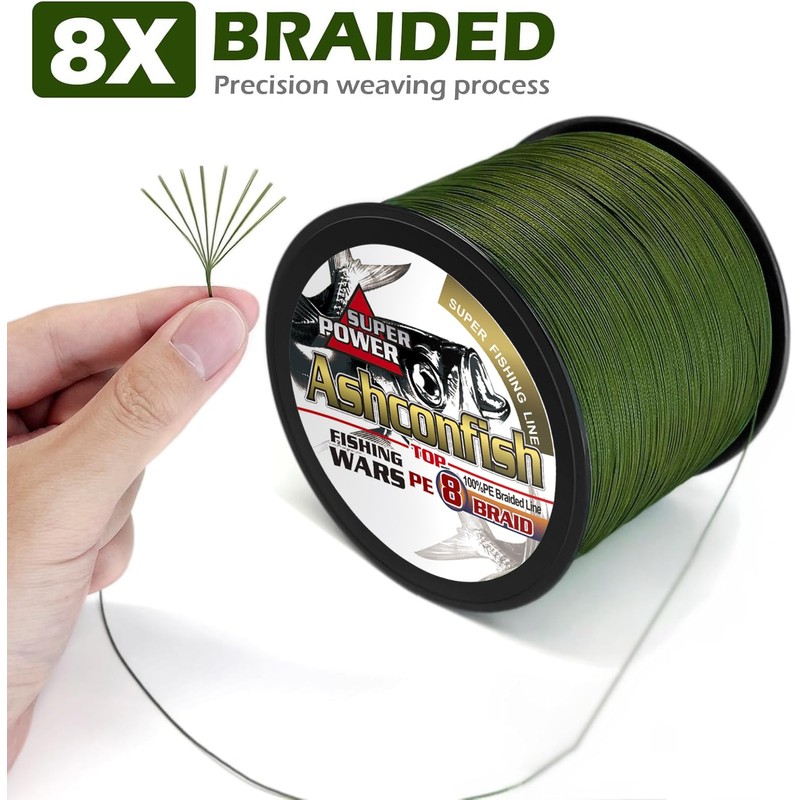 - **Unmatched Tensile Strength**: the 8 interwoven strands of these Ashconfish 8 strands create a composite structure that provides unmatched tensile strength, essential for fighting large and powerful fish without breaking.