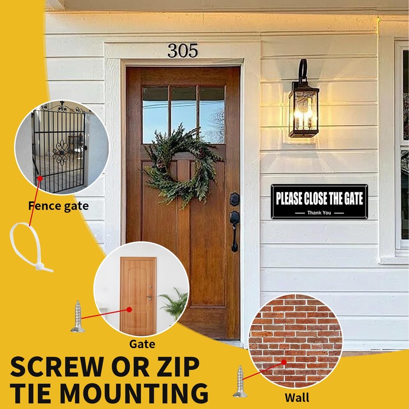 - 【Significant Alert】Our safety sign carries the crucial message "Please Close The Gate", an essential reminder in high-traffic areas to ensure the security and orderliness, products including 8 stainless steel screws and 10 cable ties