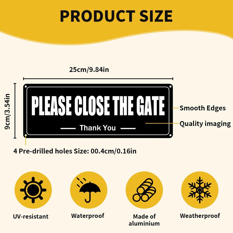 Asheyya 2PCS Please Close The Gate Sign, 25 X 9cm Rust Free Close The Gate Sign, UV Resistant Waterproof