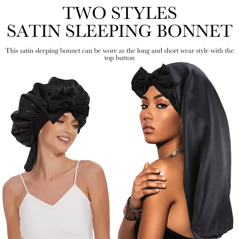 - 【Universal Fit】The large-sized silk nightcap fits all head sizes with a 27-inch length. The elastic band ensures no tightness or slippage, accommodating thick hair, braids, weaves, rollers, hair clamps, long hair, and up-dos for a perfect fit
