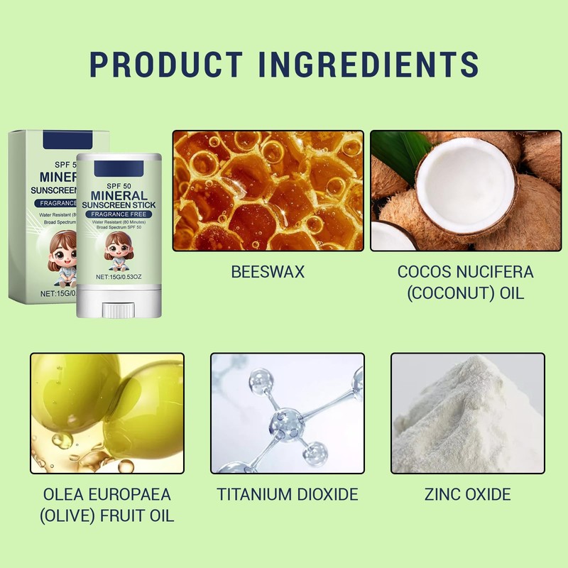 - Gentle formula: This non-greasy sunscreen stick contains natural zinc oxide to protect delicate skin from dust and pollution while protecting against UVA/UVB rays. Suitable for babies and toddlers, as well as sensitive areas of the face/body!