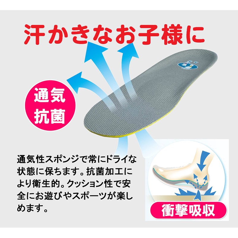 Ashimaru Insole, Kids, Antibacterial, Deodorizing, Sweat Absorbent, Dry, Arch Support, Adjustable Size, Sports, Arch Reduction, Cushion, Children's Insole, yellow