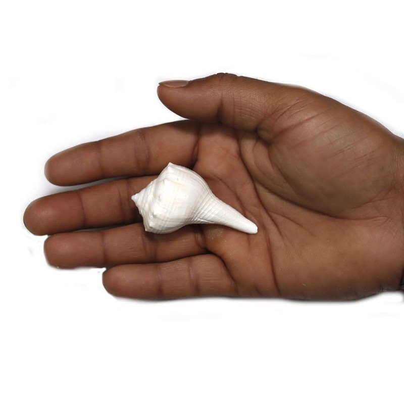 Dakshinavarti Shankh is also called Valampuri Sanggu, or Sri Lakshmi Shankh, or Right Handed Shankh. It is a sacred Hindu object otherwise known as a conch shell in English. This is the shell of a small sea snail from the Indian Ocean (a shell of the species Turbinella pyrum), but one that has the very rare reverse-turning spiral. When it is held with the spout (siphonal canal) pointed up, its spiral twists rightwards rather than very much more common form, which twists leftwards. This is a small Shankh, one can get it fitted in the ring or the locket.