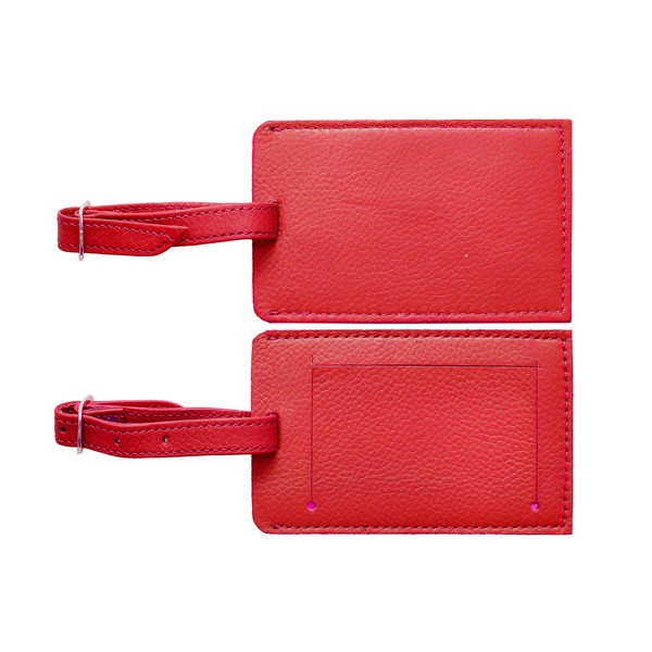ASHLIN Executive Single Rectangular Luggage Tag - 100% Genuine Leather | Open ID Window [TAG04-48-47] (Fire Engine Red)