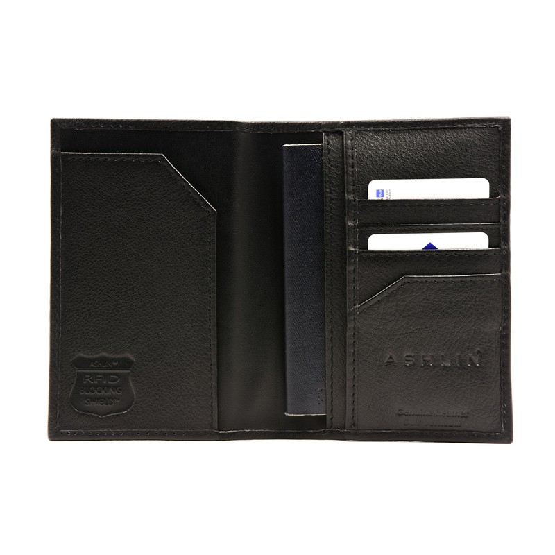 ASHLIN RFID Blocking Passport Wallet - 100% Leatherette | 1 slash pocket | 4 cards | 2 vertical pockets | Midnight Black [RFIDP221-00-01]