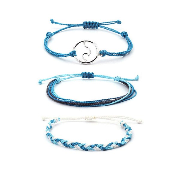 ASHMITA Summer Wave Strand Bracelet Bohemian Bracelet Adjustable Handmade Waterproof Wax Coated Braided Rope Set