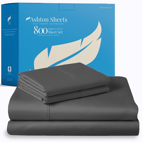 Ashton Sheets 100% Egyptian Cotton Sheets Queen Size - 800 Thread Count 4 PC Queen Sheet Set Egyptian Cotton, Sateen Luxury Sheets Queen Size, High Thread Count Sheets, 16" Deep Pocket - Dark Grey