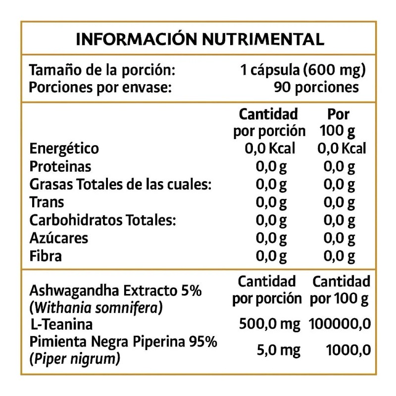 Ashwagandh +l-teanina 90 Capsulas Sin Sabor