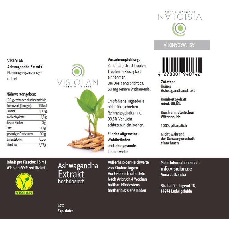 - High dose and effective: just a few drops daily are enough. VISIOLAN Ashwagandha contains a concentrated dose of Withania somnifera - the proven adaptogen from the Ayurvedic healing art - for greater inner calm, energy and mental strength.