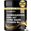 - PREMIUM QUALITY, CONVENIENCE, AND VITAMIN B6 BENEFITS – Our Ashwagandha KSM-66 & Lion’s Mane Capsules provide 2000mg per serving, offering a potent dose for maximum effectiveness. With 120 capsules per bottle, you get a two-month supply to consistently support your wellness journey. KSM-66, the highest concentration extract of Ashwagandha, is known for its superior quality and effectiveness. In addition, these capsules are enhanced with Vitamin B6, which supports brain health, energy production, and helps regulate mood. Carefully crafted with natural ingredients, this formula is designed to help you achieve optimal health and wellness effortlessly.