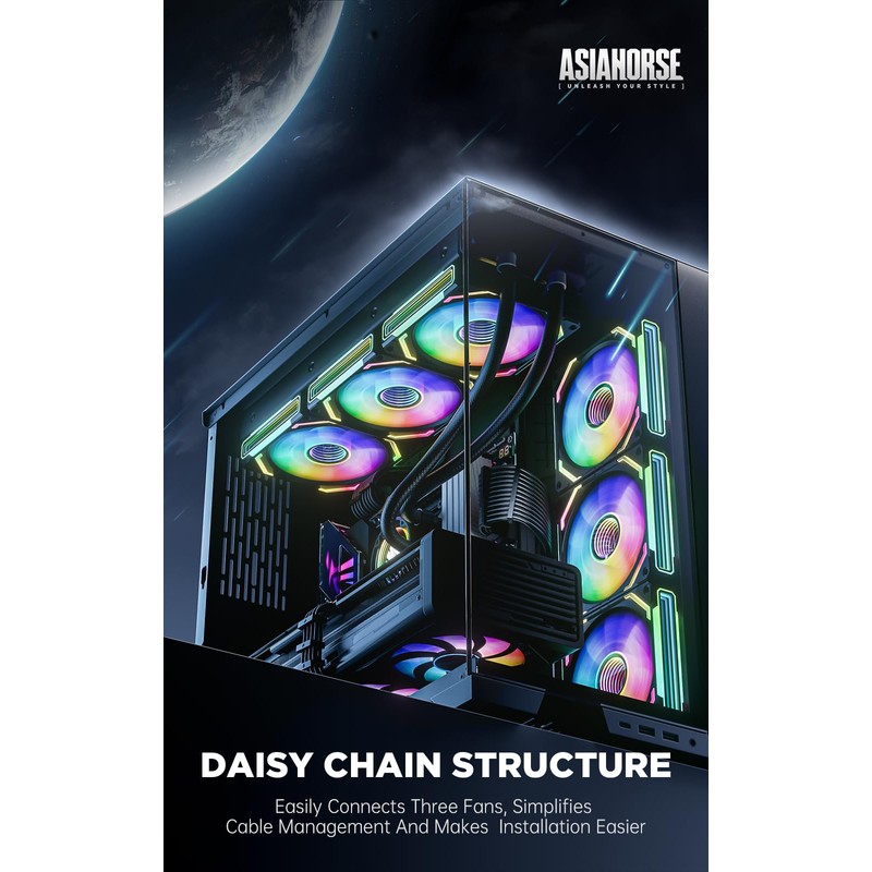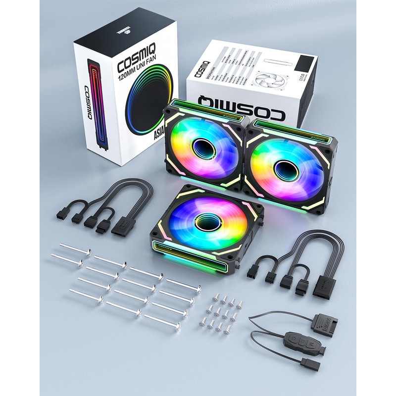 AsiaHorse AsiaHorse COSMIQ 120mm PC RGB Fans Computer Case Fans, 5V 3-PIN Connector Daisy Chain PWM Cooling Fans with Controller for Cases CPU Liquid Coolers (Black COSMIQ Forward Fan, Black-3)
