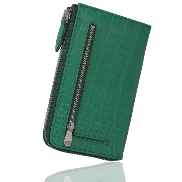 ASIAN ZACCA bhs0009 Compact Wallet, Long Wallet, Leather, Long Wallet, Approximately the Same Width as 10,000 Yen Bill, Crocodile-Embossed Large Capacity, Thin, L-Shaped Zipper, Mini Wallet, Opens