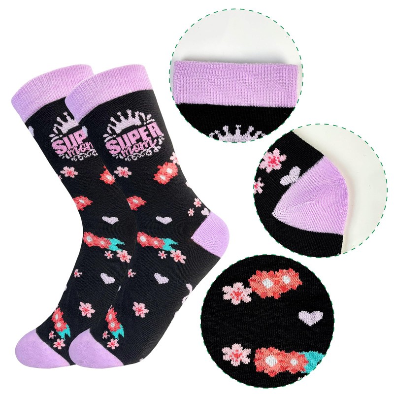 - A bold statement of love:The socks feature the iconic “Best MOM Ever” tagline with crowns and flowers on the foot side. The eye-catching purple socks are rich in rhyme, perfect for moms with superhero status.