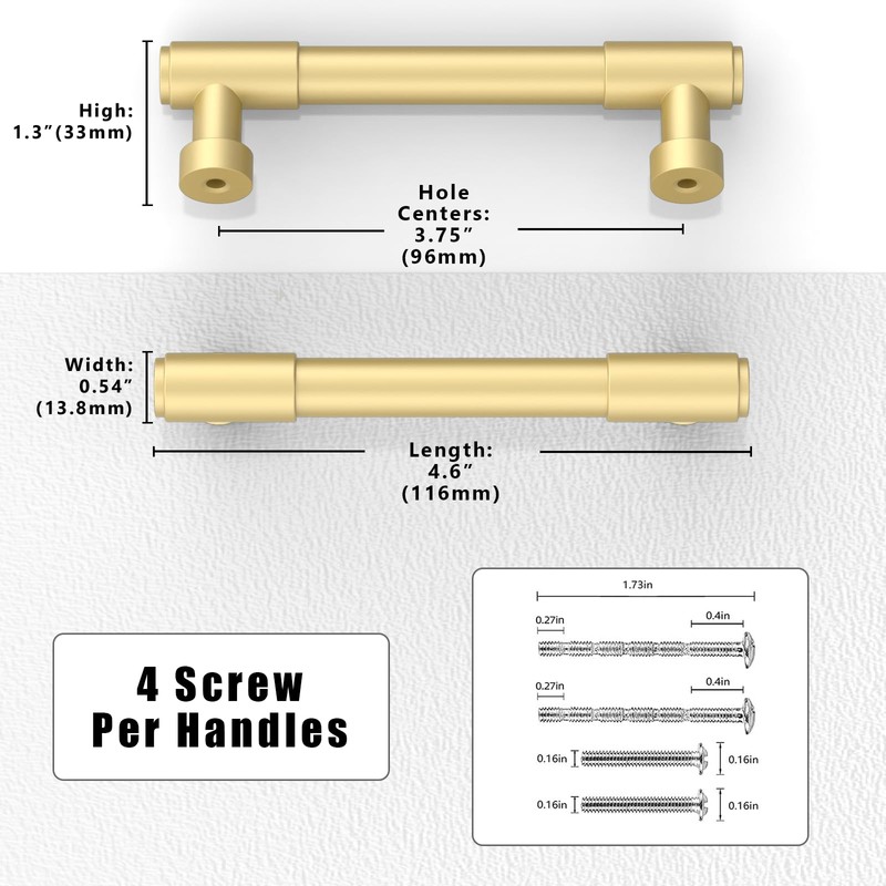 Asimerdeco 10 Pack Brushed Gold Cabinet Pulls 3.75 Inch(96mm) Kitchen Cabinet Handles Solid Zinc Alloy Cabinet Hardware Drawer Pulls
