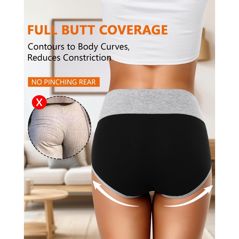 - TUMMY CONTROL FOR A SLEEK SILHOUETTE - The elastic wide waistband wraps around your tummy, helping to shape your silhouette and providing ample support. With no rolling down or bunching, these high-waisted, super soft cotton panties are suitable for anyone looking for comfortable daily wear. They are also highly suitable for postpartum and cesarean recovery