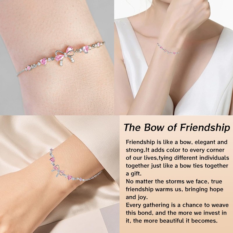 Asitanie Bow Zircon Bracelet Friendship is Like a Bow Zircon Bow Bracelet Adjustable Bow Bracelet Bow Friendship Bracelets with White and Pink Zircon, Iron