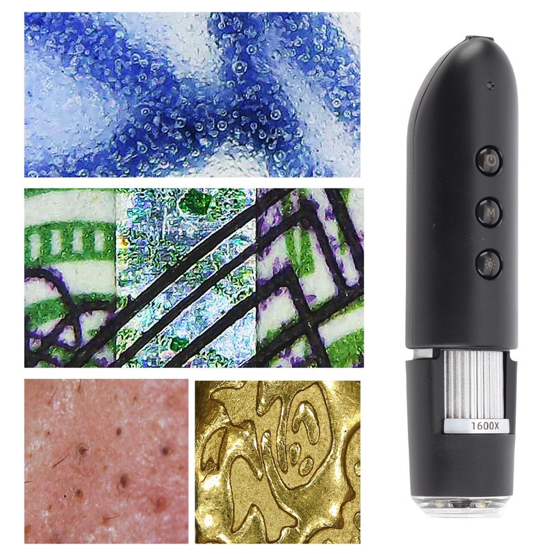 - 【Microscopios portátiles Super HD de 1600X】8 LED de brillo ajustable, lo que hace que el producto una identificación magnificada de 1600X, imágenes claras y buena reproducción del color. También proporciona excelentes detalles y una claridad óptima. El detector de piel y cabello, con alta resolución e imagen clara, lo ayuda a conocer el estado del cuero cabelludo, el cabello y la piel.