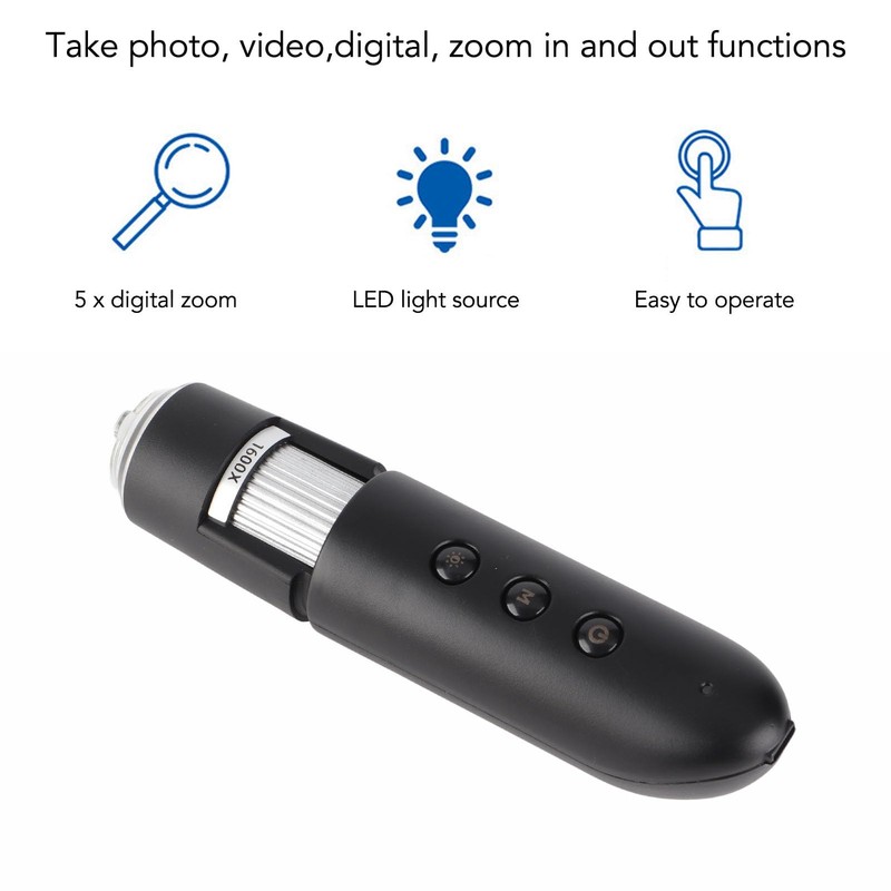- 【Microscopio inalámbrico WIFI】Fácil de usar, se puede conectar al teléfono móvil y al ordenador. Este es un microscopio digital inalámbrico que ha sido diseñado para funcionar con su teléfono móvil para Android o para dispositivos iOS, solo necesita abrir el WiFi de su dispositivo para conectarse al punto de acceso WiFi del microscopio.