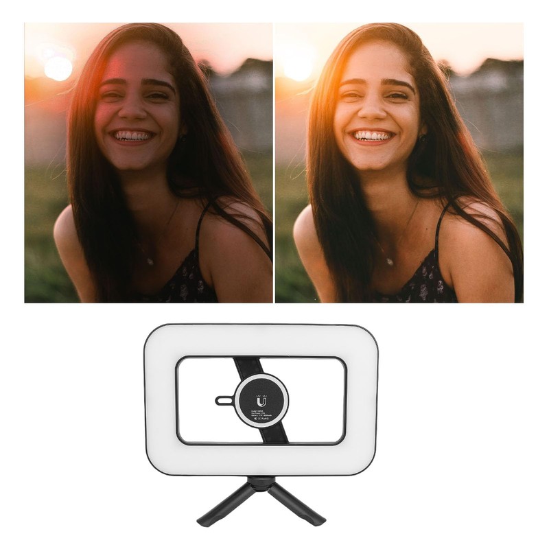 - 【Magnetic Attachment】The built in magnetic allows for easy setup and stability during shoots. For devices without a magnetic back, simply use the included magnetic adhesive pad to secure your phone. The triopd design on the bottom makes the light more stable when placed on a desktop, Widely used in outdoor video recording/photography/makeup/ live streaming etc.