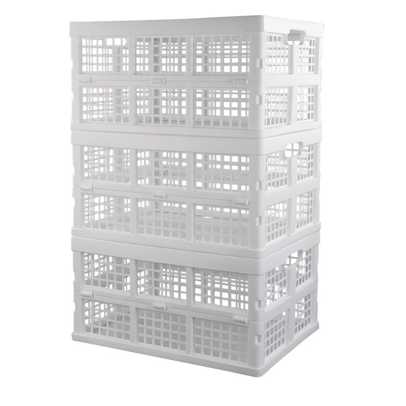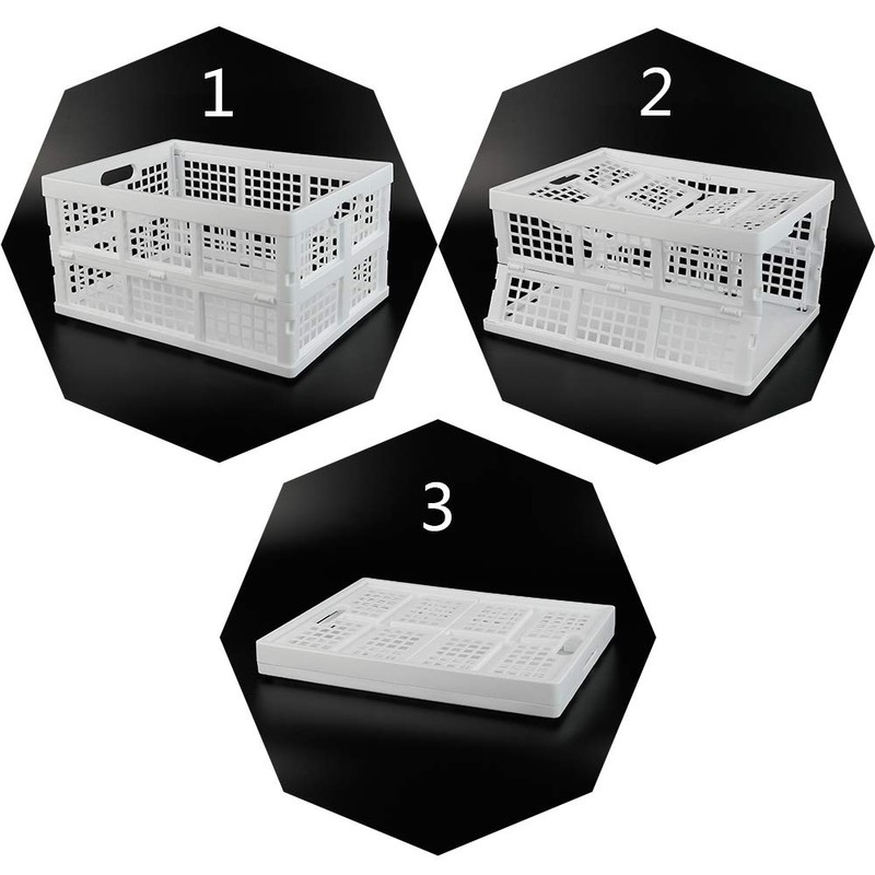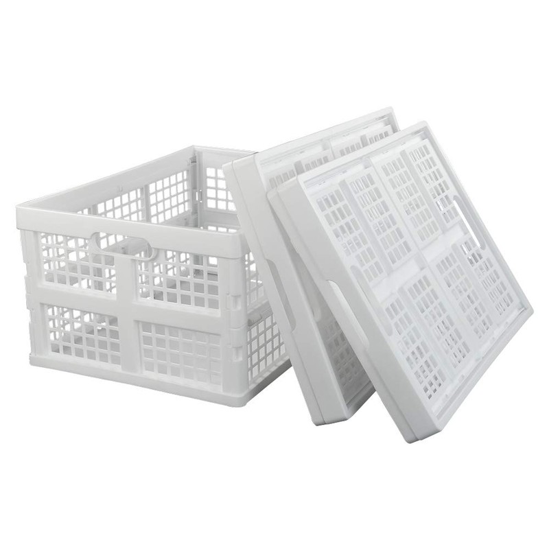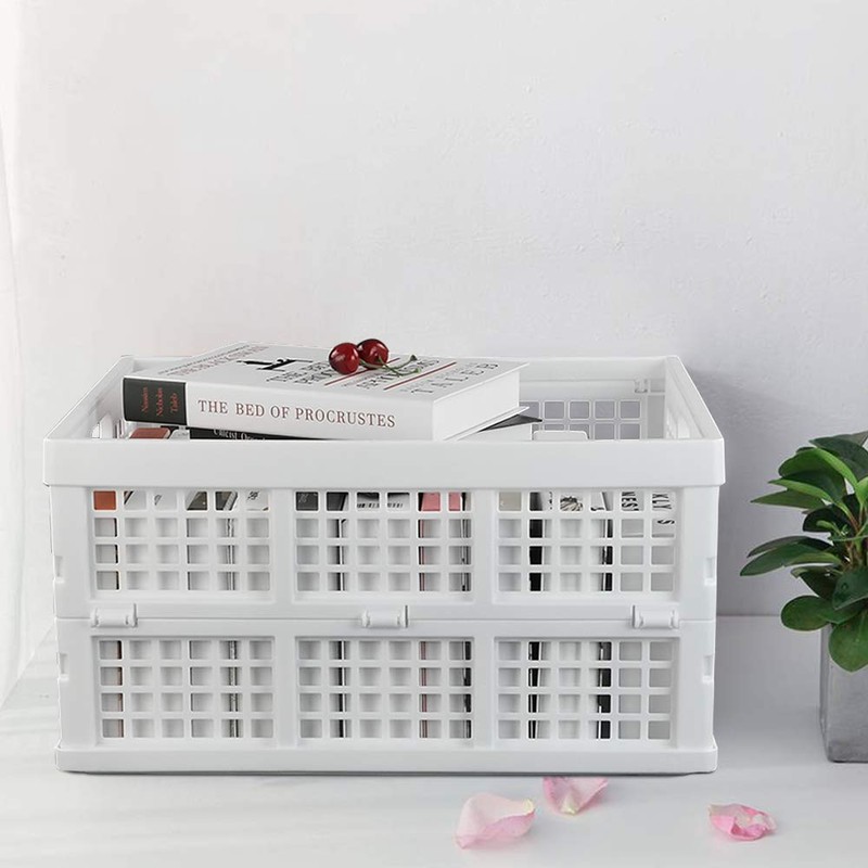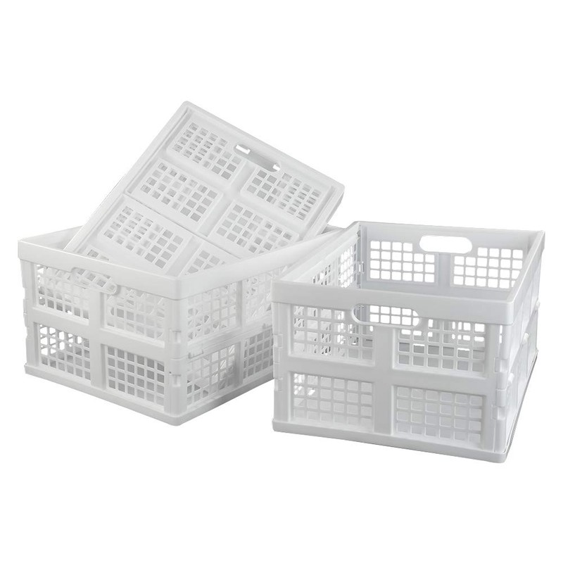 Asking 30 L Plastic Collapsible Storage Basket Folding Crate, Set of 3, White