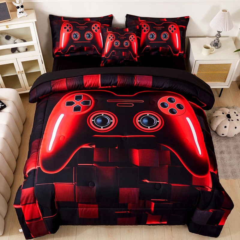 ASKOTU Gamer Twin Boys Bedding Set, Red Game Console Comforter Set Twin Size ...