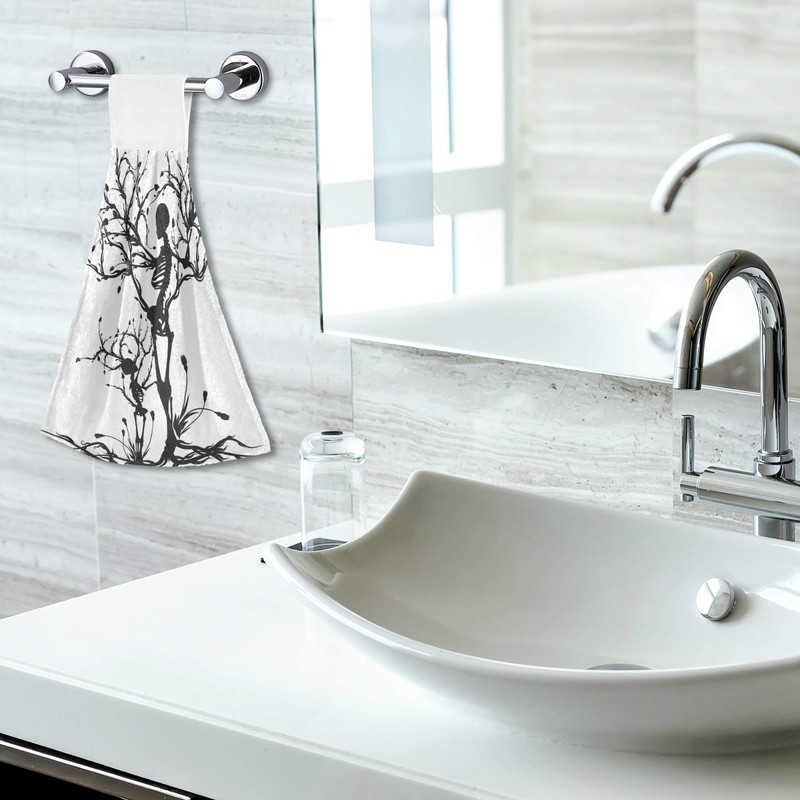 Aslsiy Skull Hanging Kitchen Towels Tree of Life Bathroom Hand Tie Towel Fast Drying Dish Tea Towels for Bath Tabletop Gym Home Decor Set of 2