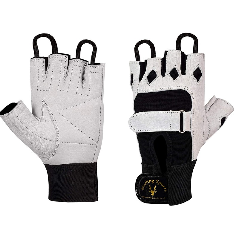 ASM® Weight Lifting Gloves Gym Fitness Training & Workout - Professional Grip Gloves Gel Padded Hooks Straps Exercise Running or Cycling - Leather Gym Accessories For Women & Men (White, Small)