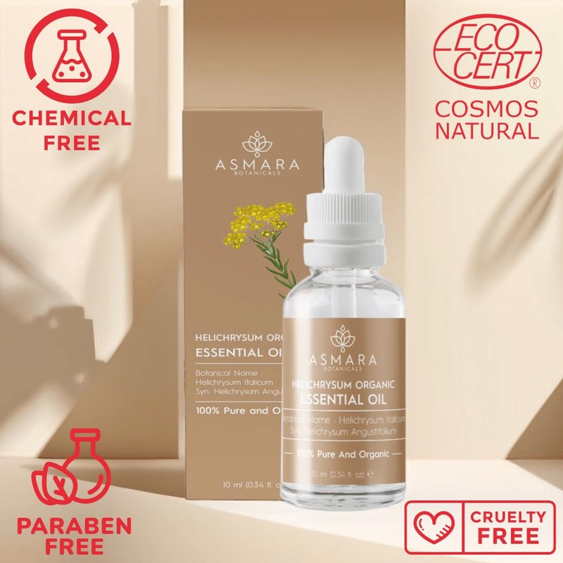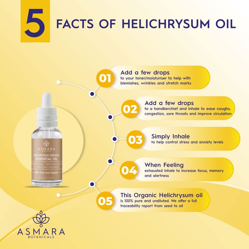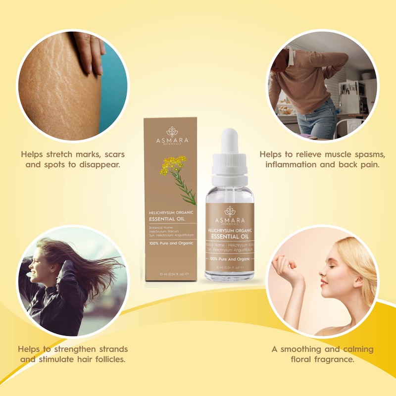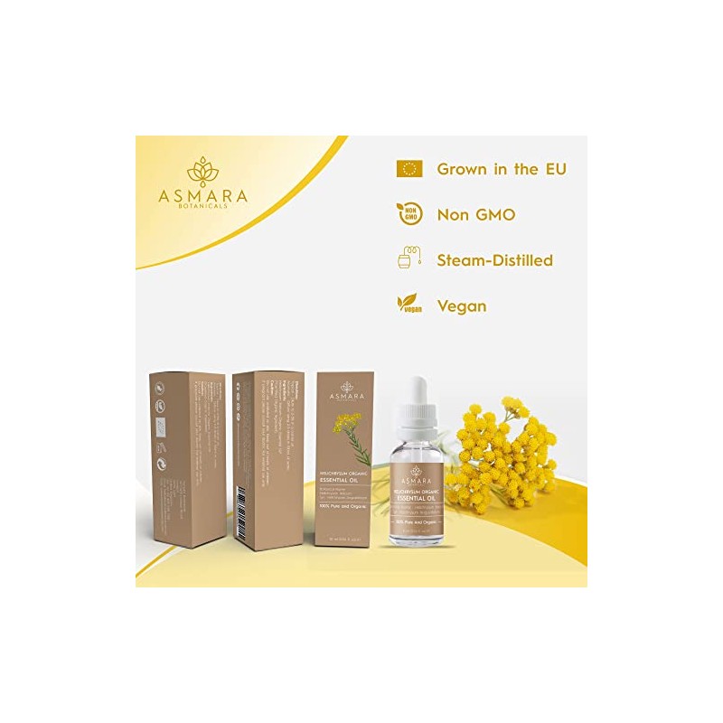 ASMARA BOTANICALS Asmara Botanicals - Helichrysum Essential Oil - Organic Cert - 10ml - 100% Pure - Reduces Acne Scars & Stretch Marks - Therapeutic Grade - Bottled in The UK