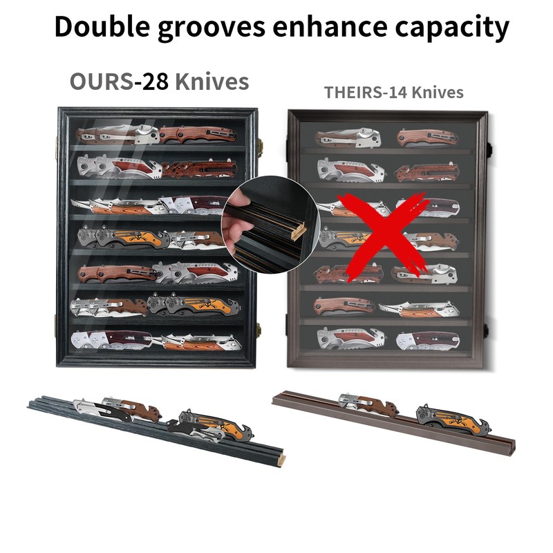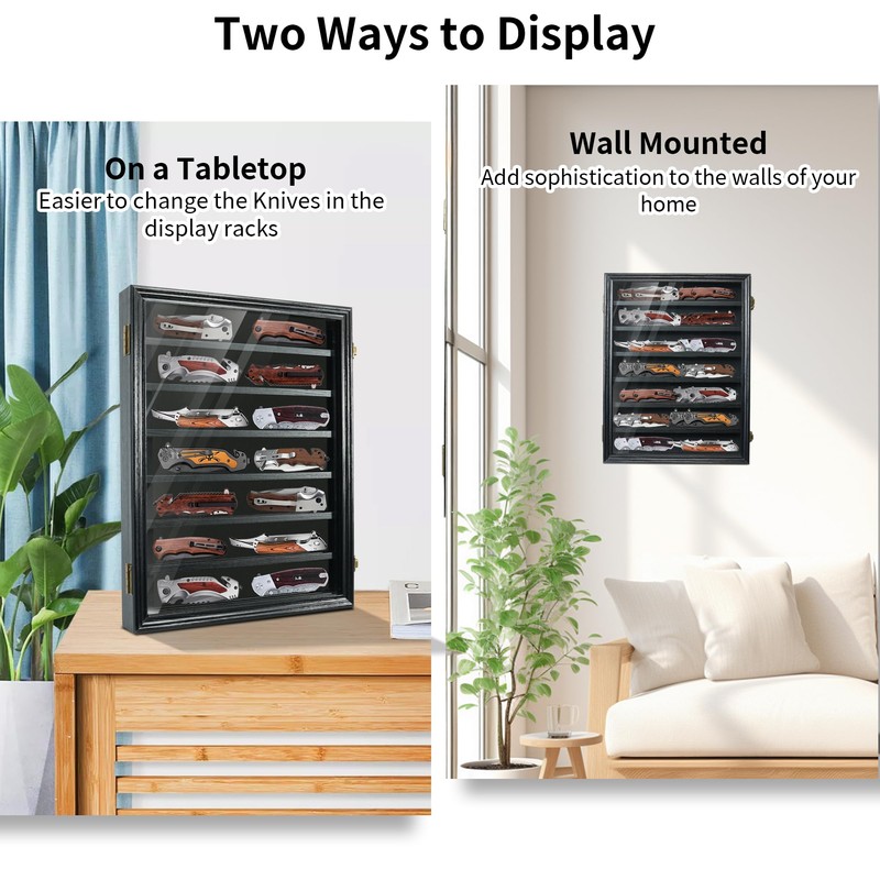 - SAFE PACKAGING: Knife box for pocket knives is a ideal gift for knife cases for collections, outdoor enthusiasts or DIY family and friends! You don't have to worry about packaging, because the pocket knife display cabinet is surrounded by foam 360°to avoid damage during transportation.