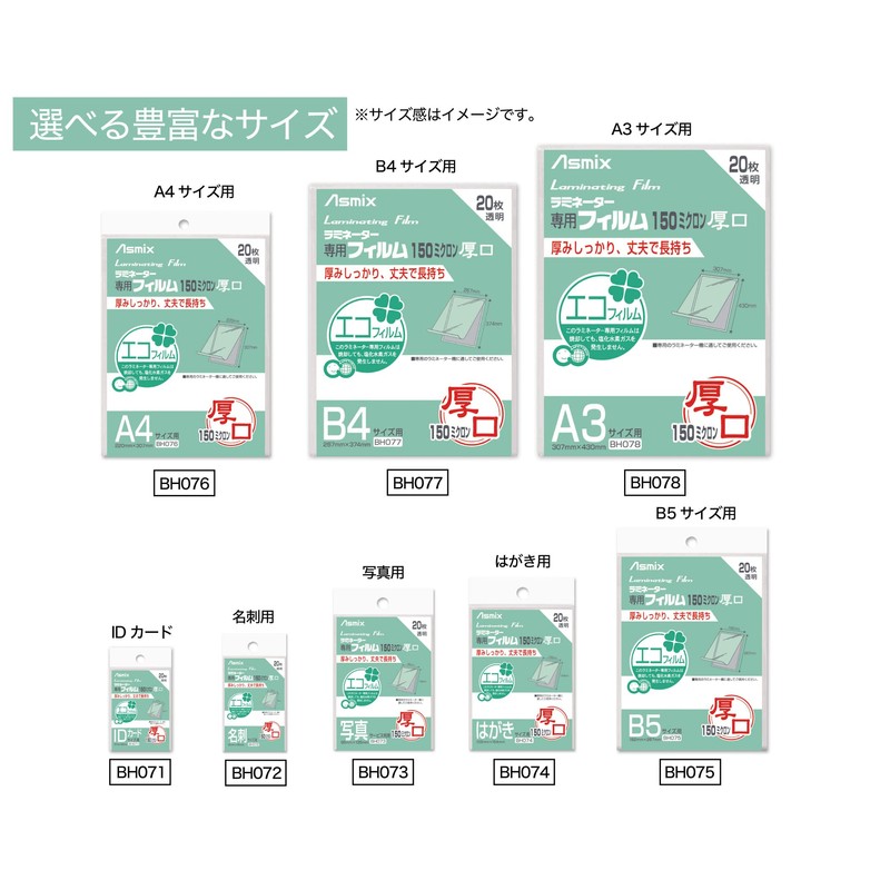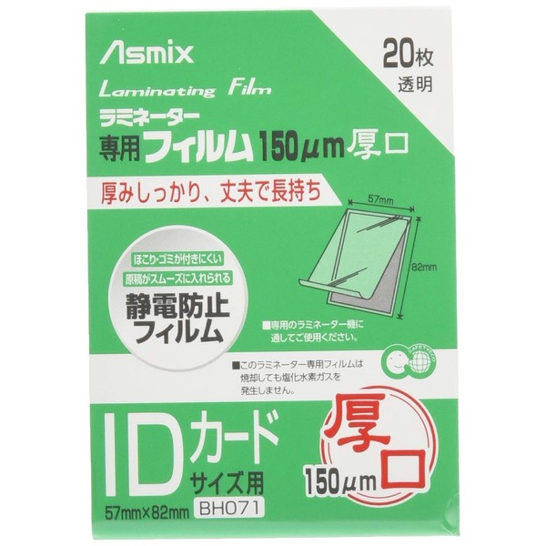 Asmix BH071 Laminating Film, Thick 150μ, ID Card Size, 20 Sheets