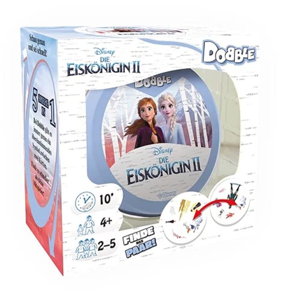 • Dobble is a fast and fun card game for young and old. In this version of the family game, you enter the Disney world of Elsa and Anna