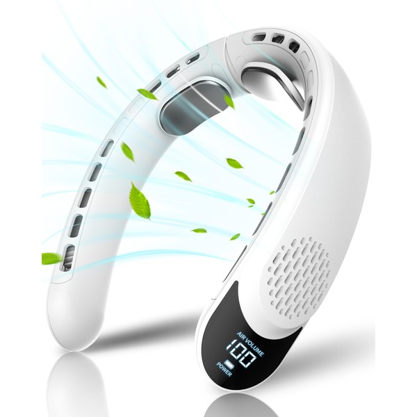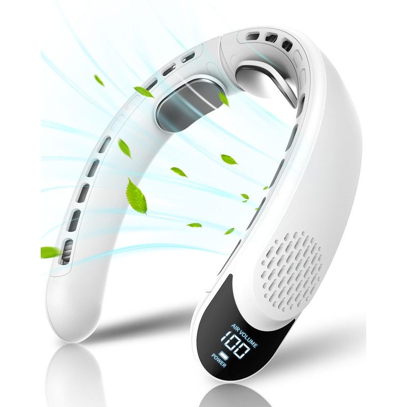 - [3-Speeds & LED Digital Display] This leafless hanging neck fan has three-speed adjustable(soft wind, natural wind, strong wind), which can meet your daily needs. The LED digital display screen can display the remaining power,charging status and wind speed, allowing you to know the working status of the hands-free fan at any time.