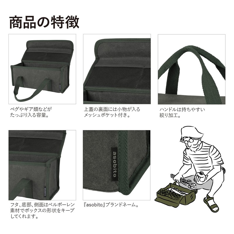 asobito ab-010OD Tool Box, Small, Olive, Approx. 11.8 inches (30 cm), Hammer, Pegs, Storage Case, Waterproof, Durable, Cotton Canvas, Camping, Outdoors