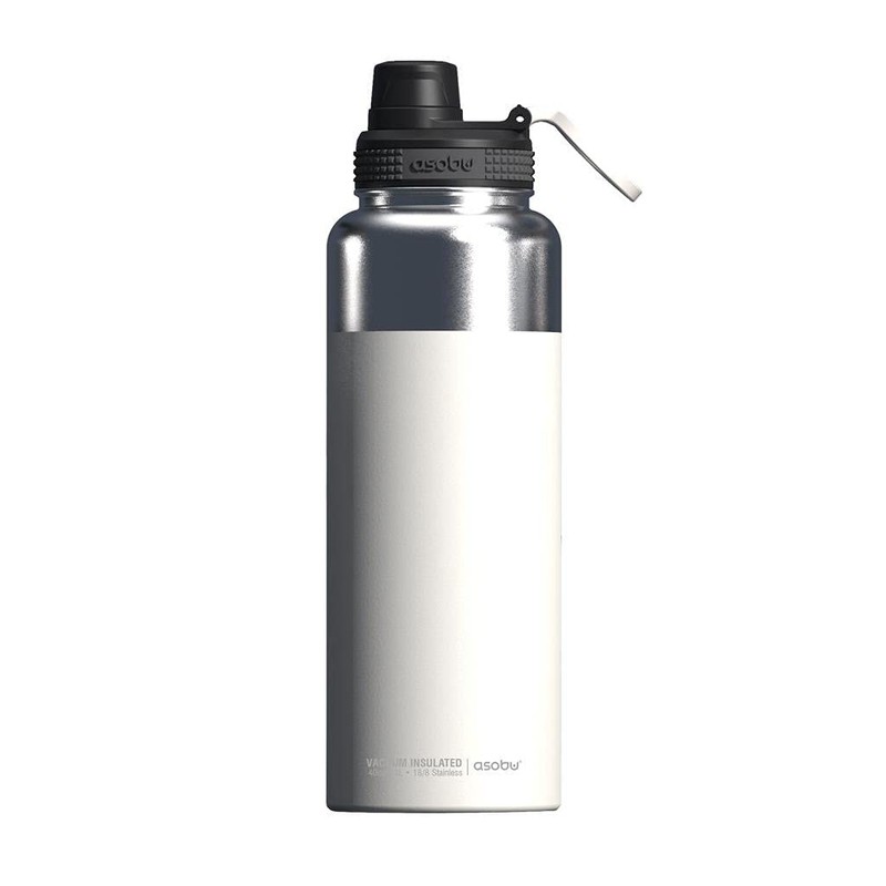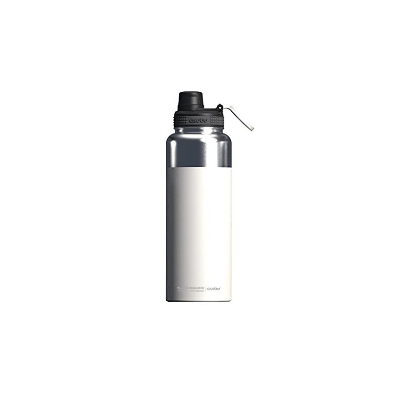 Asobu BPA Free Mighty 40 OZ Flask Water Bottle Made of Stainless Steel with Easy Grip Handle and Easy Access Spout Stays Hot/Cold for 12/24 Hours (White)