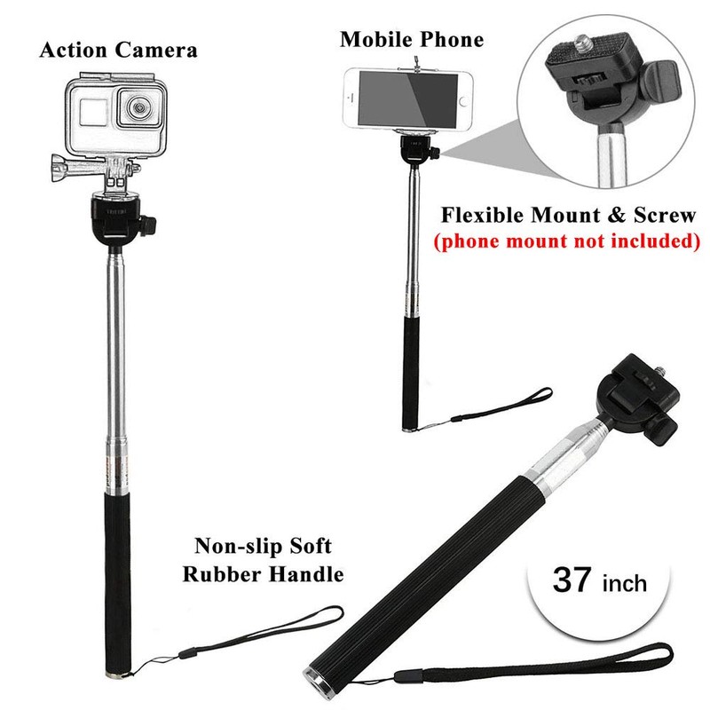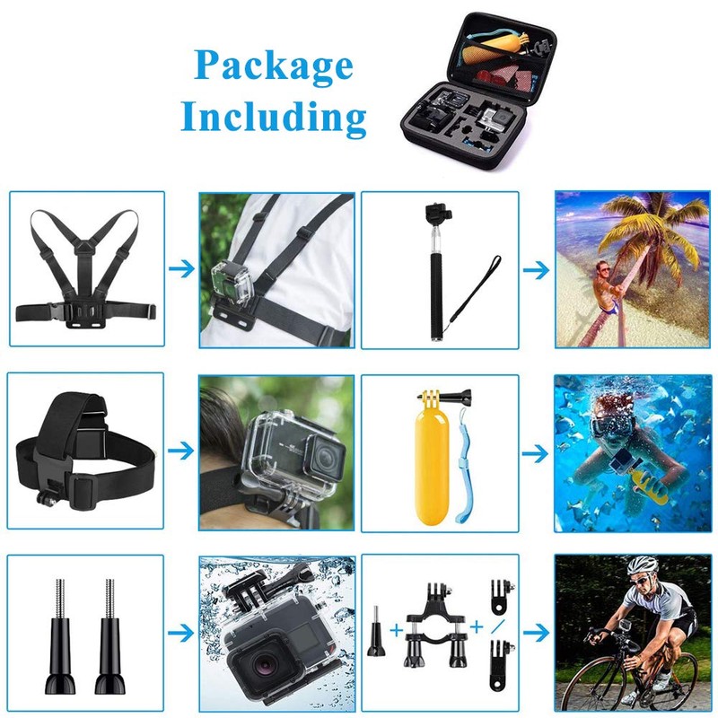 - 20-In-1 Action Camera Accessories Kit contains the essential items you need to shoot great photos and videos! including above peoples heads at gigs or sporting events or easily film yourself