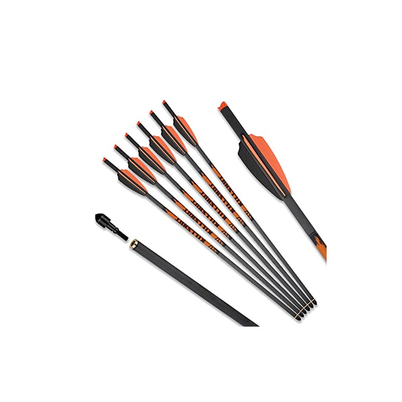 ASODROCK Crossbow Bolts 20 Inch 400 Grain Carbon Crossbow Arrows .001 Straightness with 3 Inch Vanes, Moon Nock (Pack of 6) (.001 Straightness)