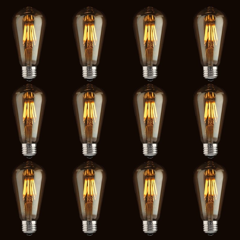 ASOKO LED Dimmable Vintage Edison Led Bulbs 6W Antique Style, 2300K Warm White (Amber Gold Glass), ST64, E26 Base (2300K-6W-12PCS)