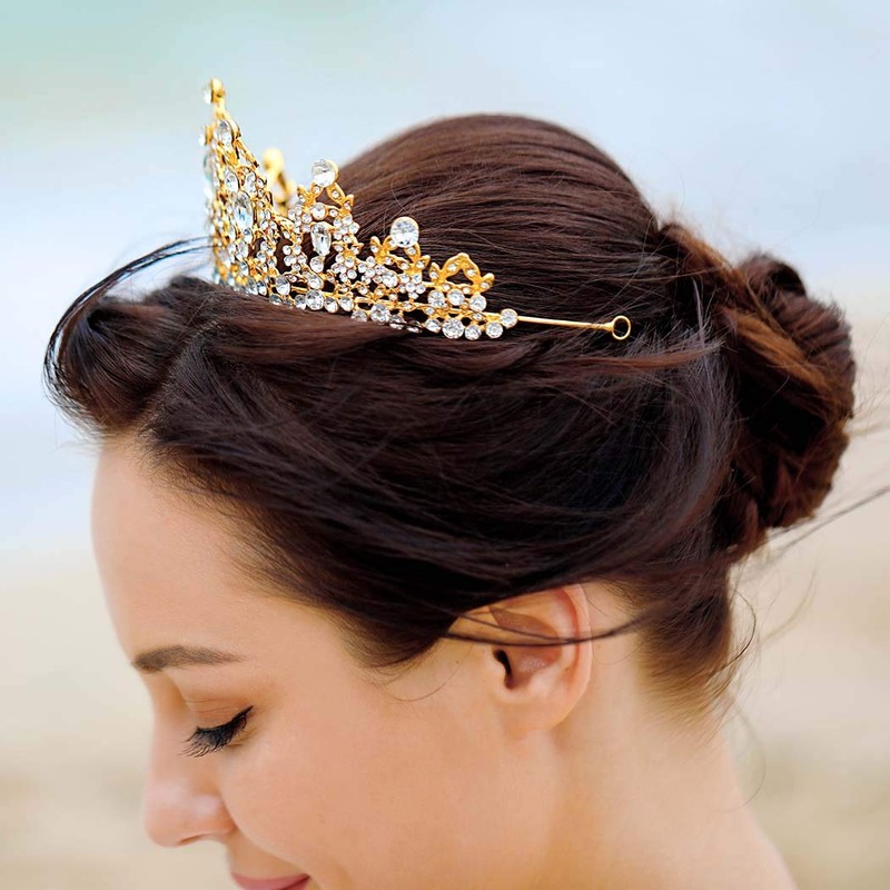 - Diadema de oro de novia de tamaño aproximado: 15 cm, tamaño última intervensión para mujeres y niñas.