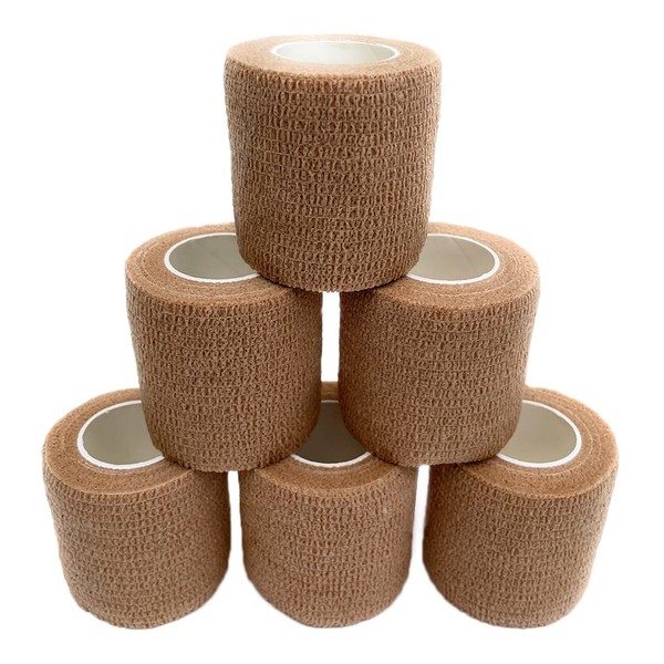 ASPALAND 自着性テープ 包帯 テーピング エラスチック バンデージ 自己粘着 伸縮包帯 弾性 (ベージュ6巻入, 5cm*4.5m)