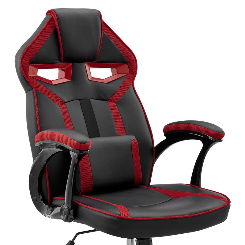Aspect Adjustable Racing Gaming Chair in Black Faux Leather and Red Mesh with Lumbar Support Pillow