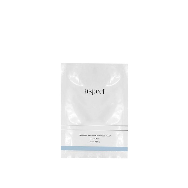 Aspect Intense Hydrating Sheet Mask is a deeply hydrating mask infused with vitamins, minerals, botanicals and hyaluronic acid for a softer, smoother, more supple looking complexion.