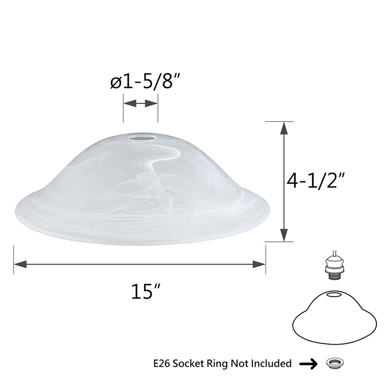 Aspen Creative 23142-11A Alabaster Shade for Medium Base Socket Torchiere, Swag Lamp and Pendant, 15" Diameter x 4-1/2" High, 1 Pack Replacement Glass