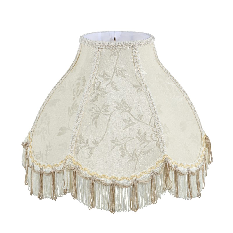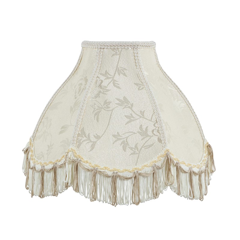 - Shade Color & Material: Ivory Jacquard Textured Fabric with Fringe & Floral Pattern