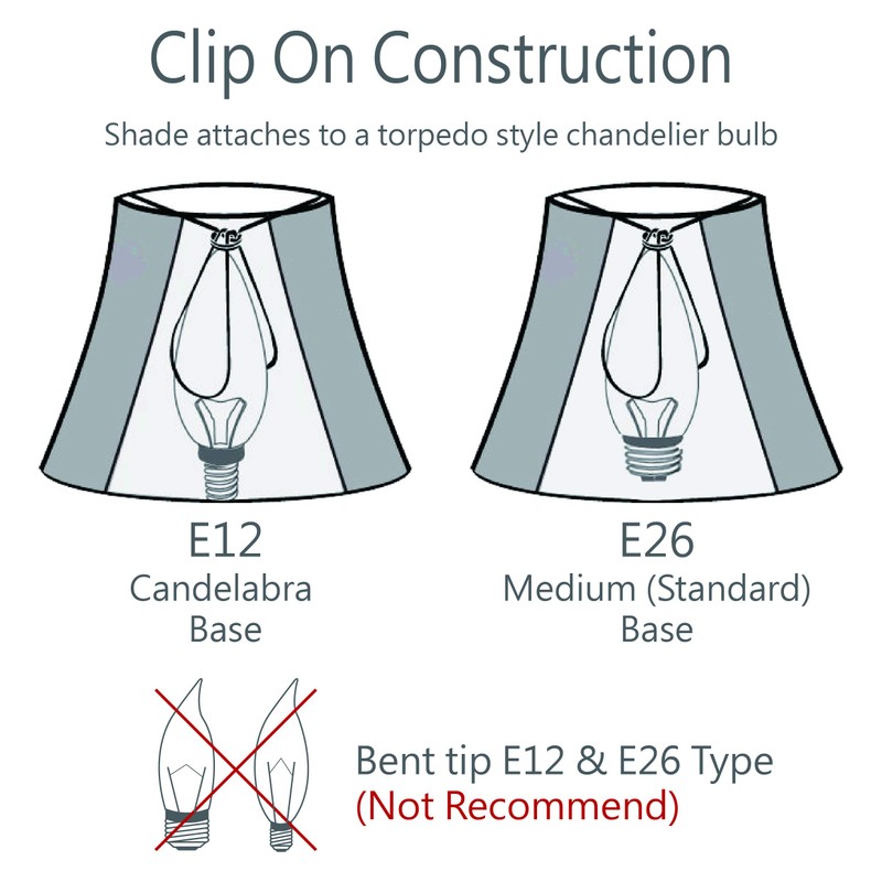 - Clip-on style fitter designed for bare Torpedo chandelier bulbs (bend tip bulbs not recommended) either in candelabra base (E12) or medium base (E26), light bulbs not included